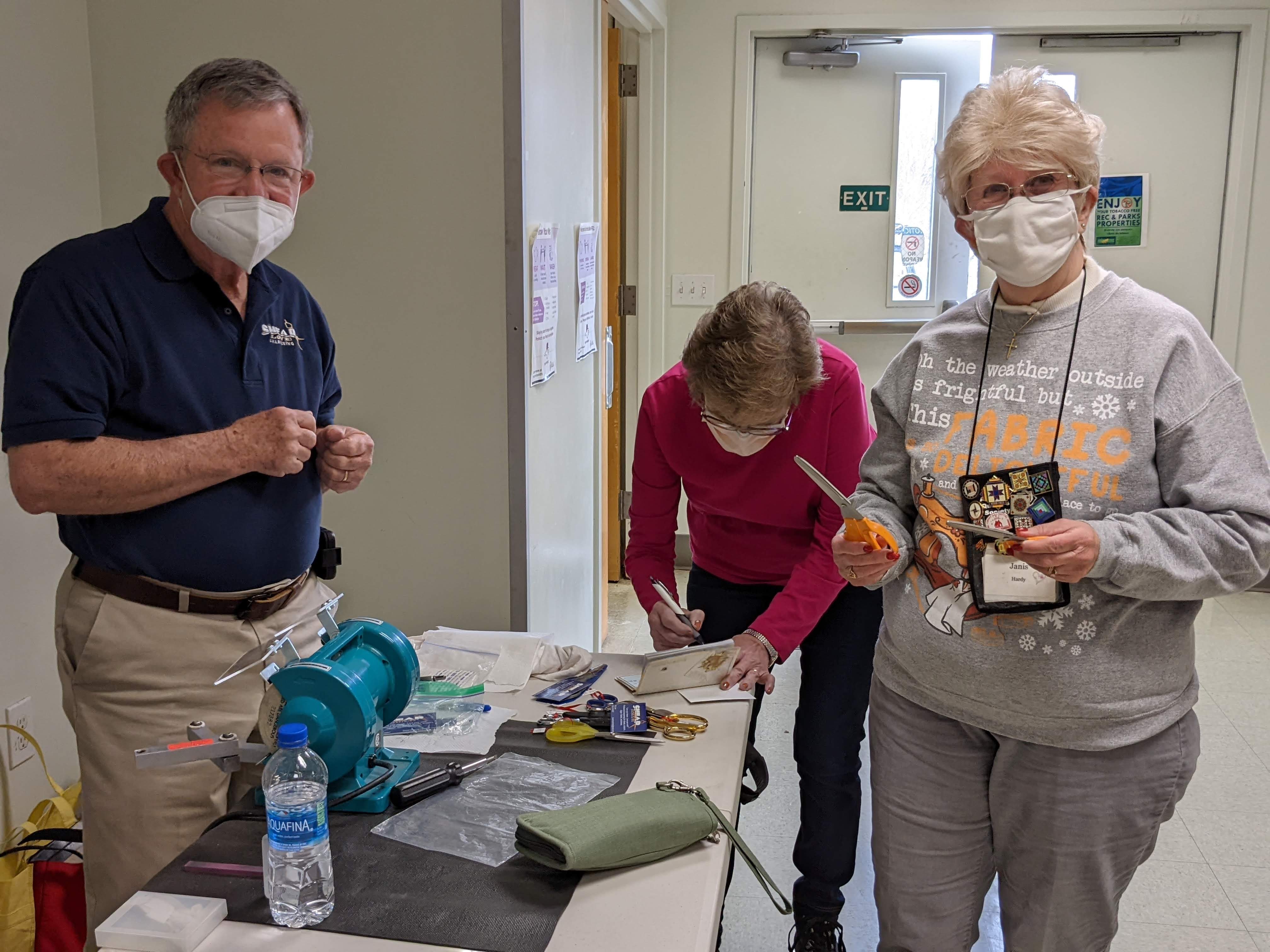 Welcome to a new year with Alamance Piecemakers! New Board members starting their terms this month are President, Deborah F (standing), Nancy E (right) as Vice President, and Judy B (absent today) as Secretary. Susan H (left) is returning as Treasurer.
