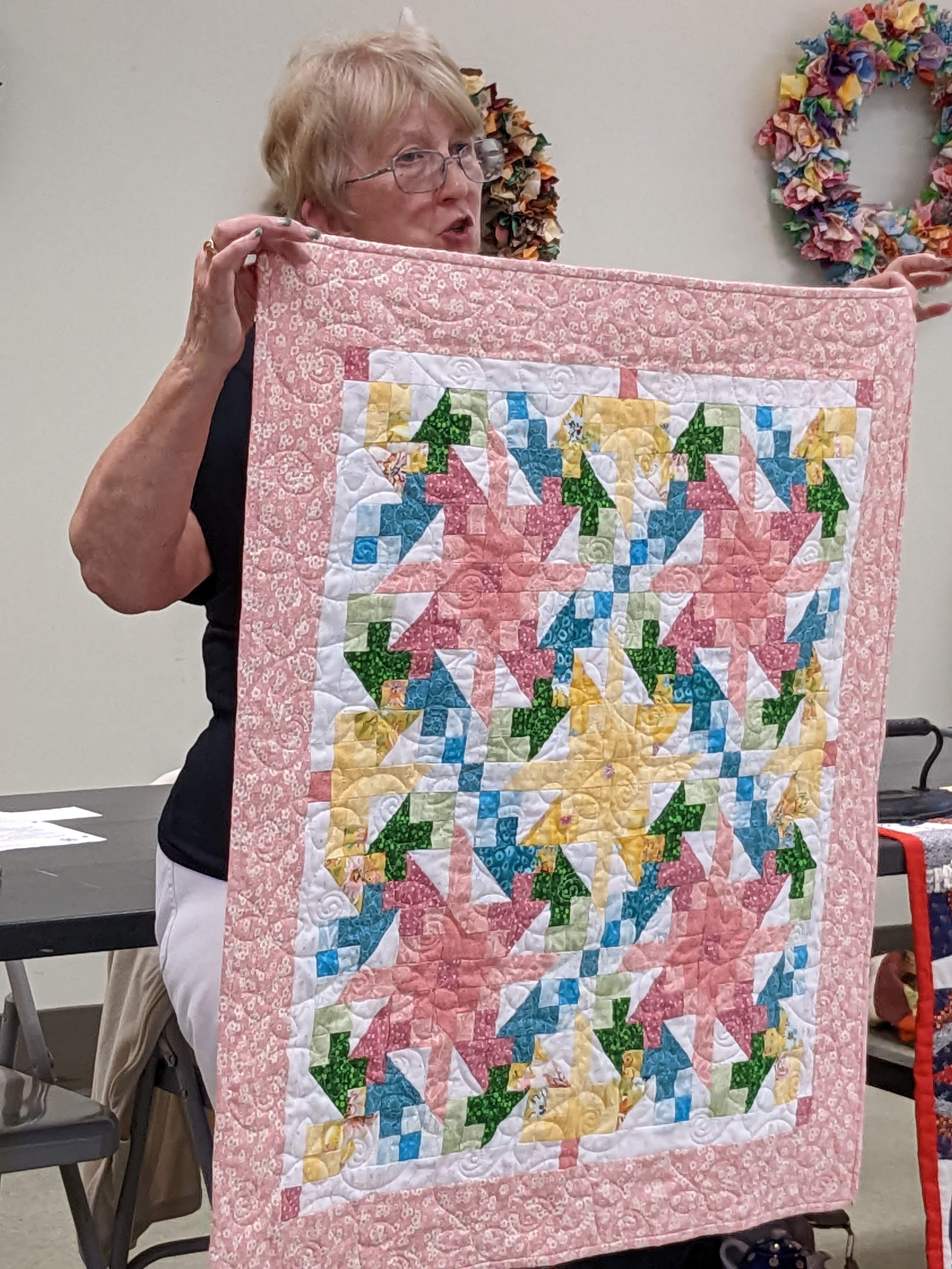 Members worked during 2022 to complete our “blocks of the month” sampler series. In October, we presented over 20 quilts to Alamance Pregnancy Care Center – for distribution to the young moms they minister to in their program – and to their babies.