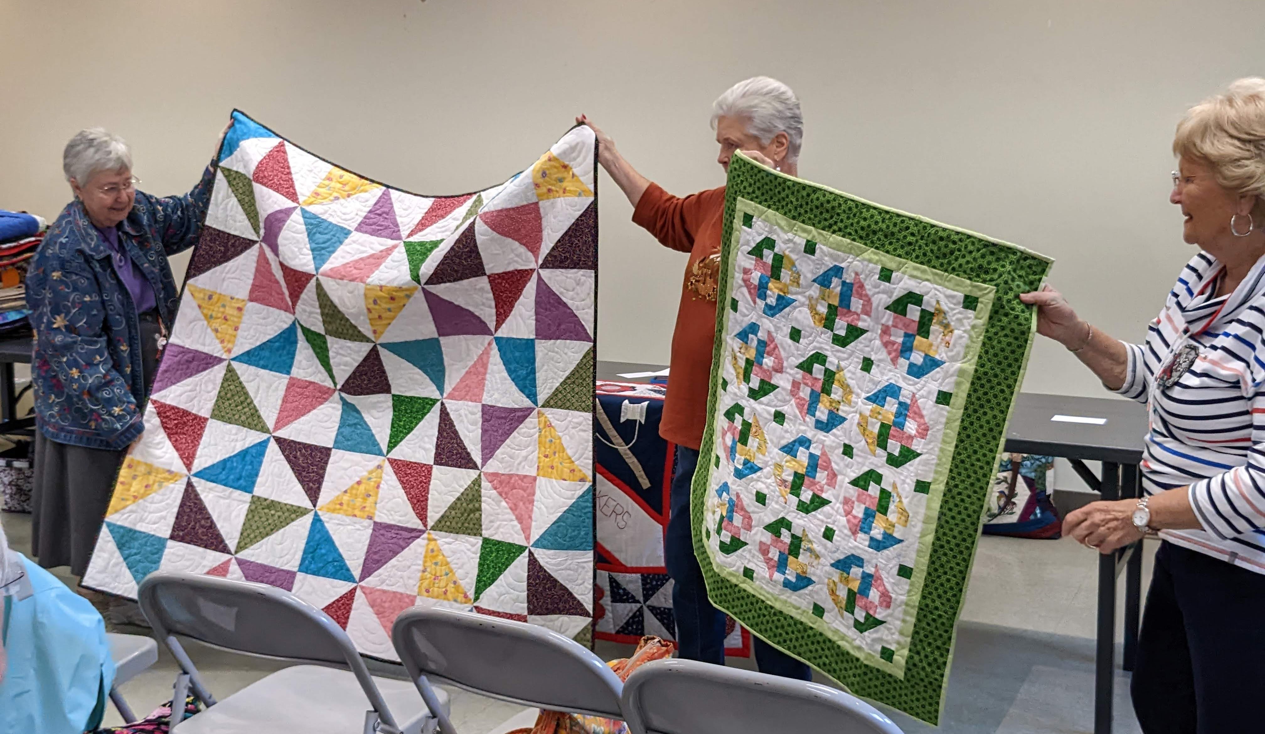 In 2018 and continuing into 2019, we worked on making “Blocks of the Month.” Members turned in blocks of a specific pattern and color scheme, which were then combined to make six quilts presented to the residents of Benevolence Farm.